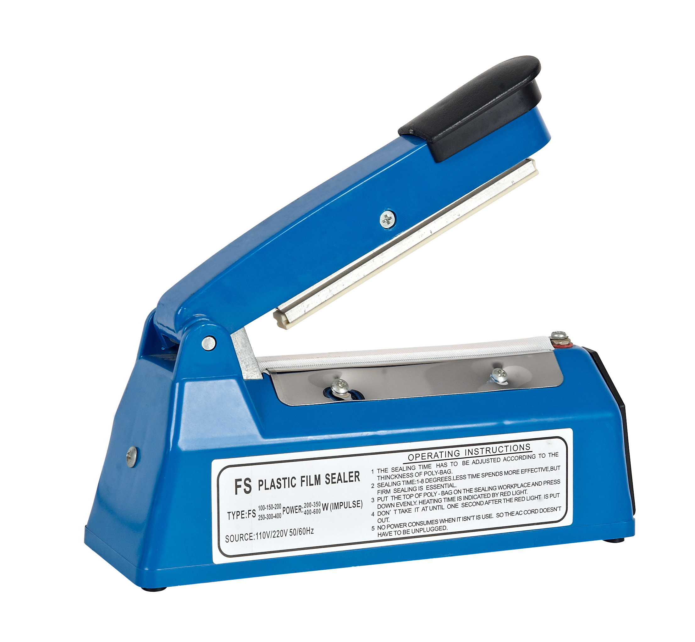 Production and Export 150 mm/15 cm/6"/6 inch Length Electric Plastic Poly Bag PFS-150 Sealing Machine Impulse Heat Sealer From Zhejiang Tianyu industry Co. Ltd Manufacturer.Electric Plastic Poly Bag PFS Series Sealing Machine Impulse Heat Sealer is the machine of mechanical seal packing container. In order to keep the product quality and avoid the loss of product, it can be used to seal the product after into the container. And you can use it with power-saving that save your money. The heat time is very short, and don't waste your time. The weight of this machine is light, you can use it easily. Come to order and try it.Electric Plastic Poly Bag PFS Series Sealing Machine Impulse Heat Sealer is light weight and hand carrying available, which is very convenient to use. Its metal case construction is much stronger than those plastic sealing machines. Durable paint painted finish to resist rust and corrosion, which ensures its long-last using life span. Item comes with an extra replace healing element and teflon tape.Simply plug in and then adjust the timer and press the handle, it is ready to use instantly. No warm-up is required, seals poly plastic bags in 0.2 to 1.3 seconds. Labor-saving design with long handle, also equipped with 4ft super long power cord, it’s ideal to be used anywhere.