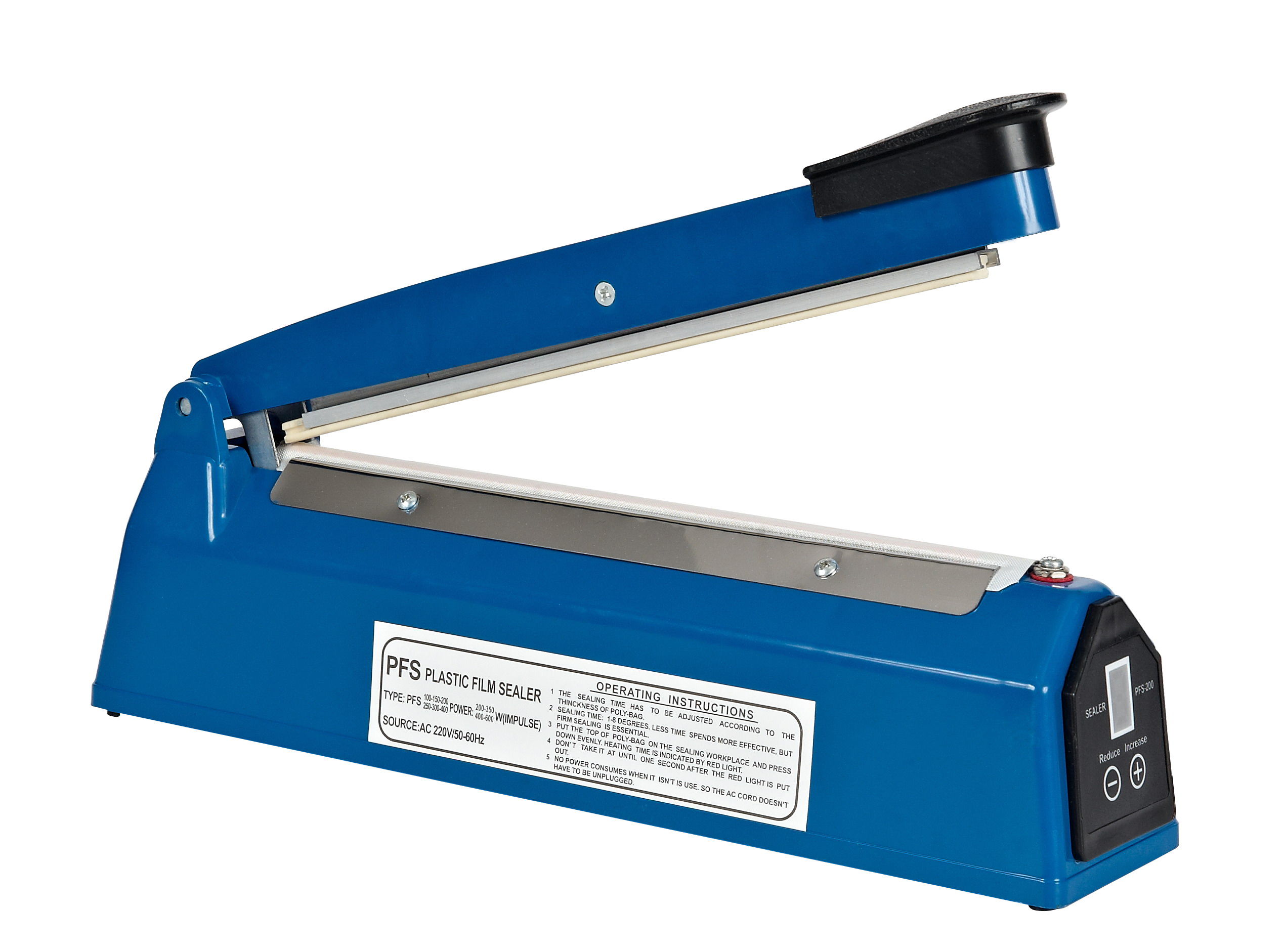 Manufacturing and Supply Plastic Sealer Heat Sealing Machine 4"/100 mm/4 inch/10 cm Length PFS-100 Impulse Heat Seal Mini Heat Sealing Machine From Zhejiang Tianyu industry Co. Ltd Factory.Plastic Sealer Heat Sealing Machine Plastic ABS Body PFS Series Impulse Heat Seal Mini Heat Sealing Machine is professional in sealing plastic. With this sealing machine, you don't have to put food in plastic or glass container. Very space saving and practical machine that you can not miss. Plastic Sealer Heat Sealing Machine Plastic ABS Body PFS Series Impulse Heat Seal Mini Heat Sealing Machine is used to seal bags for a great variety of industries and applications. They are affordable and easy to use, which makes them a great alternative for light-duty bag sealing applications. The sealing process is simple: The operator places the bag over the sealing element and lowers the upper jaw thus activating the unit. The seal process quickly ends once the preset seal time is reached. The operator retrieves the sealed bag and repeats the process...